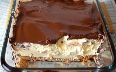 No-Bake Peanut Butter Éclair Cake Peanut butter pudding, chilled milkshake, and whole wheat chocolate chip cookies are layered and topped…