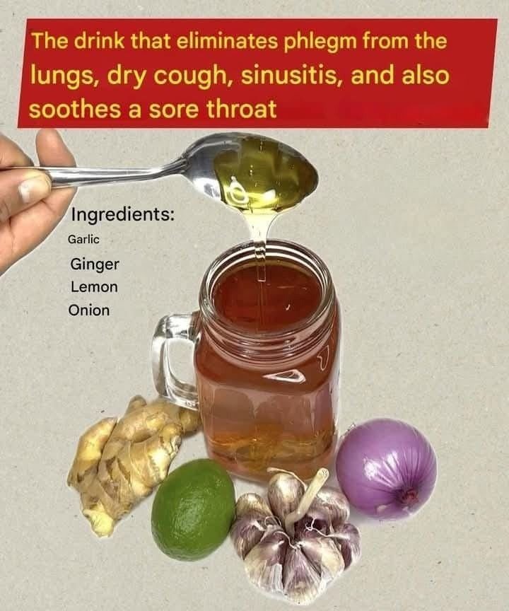 When you’re dealing with phlegm in your lungs, dry cough, or sinus congestion, this powerful natural drink can make a huge difference. Made from simple kitchen ingredients — garlic, ginger, lemon, and onion — this homemade remedy helps cleanse your respiratory system and boosts your immune defense.